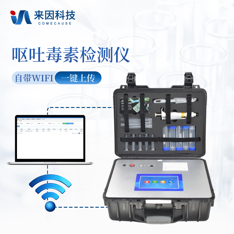 呕吐毒素快速测试仪应用竞争抑制免疫层析的原理,快速分析待检样品中是否含有呕吐毒素残留;呕吐毒素检测仪能够快速检测玉米、小麦、大米、大麦、小米和燕麦等谷物、饲料、面粉、食用油、调味品等食品中的呕吐毒素,适用于粮油监测中心、粮油饲料生产加工、食品加工贸易、畜禽养殖户自查、工商质监部门用于市场快速筛查等